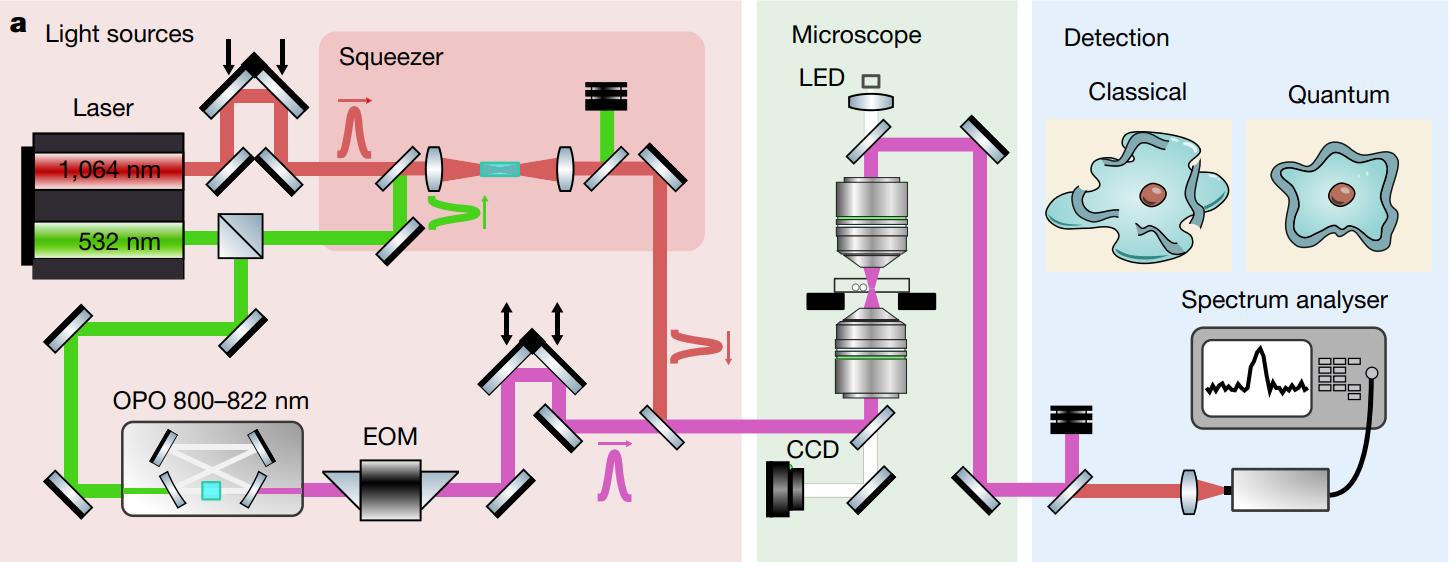 在傳統(tǒng)的OCT中,散粒噪聲——光子的隨機(jī)波動——可能限制圖像的分辨率和對比度。量子增強(qiáng)的OCT系統(tǒng)使用壓縮光,這是一種在某些參數(shù)上噪聲降低的光形式,以抑制散粒噪聲并提高圖像質(zhì)量。