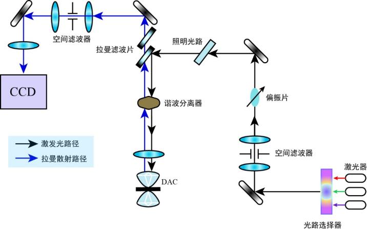 圖5. 典型高壓原位激光拉曼光學(xué)平臺的光路圖(部分)