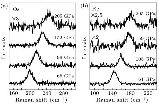 圖7. HCP金屬Os和Re的超高壓拉曼光譜[31]