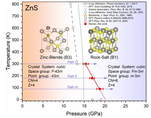 圖8. 由低溫高壓拉曼光譜實驗確定的ZnS高壓相圖[33]
