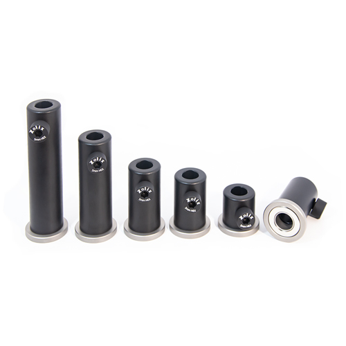 ZOLIX提供的12.7mm接桿支架包含了帶底座式結(jié)構(gòu)支架產(chǎn)品。這種光學(xué)接桿支架為安裝連接接桿與面包板或光學(xué)平臺使用。為了提高光學(xué)接桿在支架上的安裝穩(wěn)定性,我們在接桿安裝貫穿孔上設(shè)計有疊加的圓弧凹槽,該結(jié)構(gòu)使得接桿與支架形成穩(wěn)定的雙線接觸方式。同時,我們考慮需要經(jīng)常調(diào)整高度的接桿緊固可靠,又要對其結(jié)構(gòu)外觀進(jìn)行保護(hù),因此我們設(shè)計采用了內(nèi)六角滾花頭螺釘。該內(nèi)六角滾花頭螺釘為中空結(jié)構(gòu),設(shè)計有預(yù)載力彈簧帶動POM頭來緊固接桿,為此結(jié)構(gòu)我們采用高強(qiáng)度的7075-T6航空鋁,但仍需注意鎖緊內(nèi)六角滾花頭螺釘?shù)淖畲罅夭粦?yīng)超過3.2N·m。使用5mm內(nèi)六角扳手加力緊固螺釘時,為防止力矩過大,建議采用L形內(nèi)六角扳手,并握住L形短柄處操作。帶底座接桿支架利用壓塊進(jìn)行鎖緊定位,在鎖緊前,底座設(shè)計有環(huán)形磁鐵,特別針對在光學(xué)平臺等帶有導(dǎo)磁臺面的場景使用,可在壓塊鎖緊前,對光學(xué)元件進(jìn)行預(yù)定位。帶底座接桿支架為貫穿孔設(shè)計,增大接桿的高度調(diào)節(jié)范圍,進(jìn)而實現(xiàn)最低光束高度位置。該系列產(chǎn)品提供了25mm~150mm長度規(guī)格范圍可選,并且提供了5件套裝的產(chǎn)品選擇。