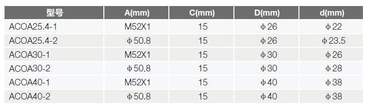 ACOA系列接圈選型表: